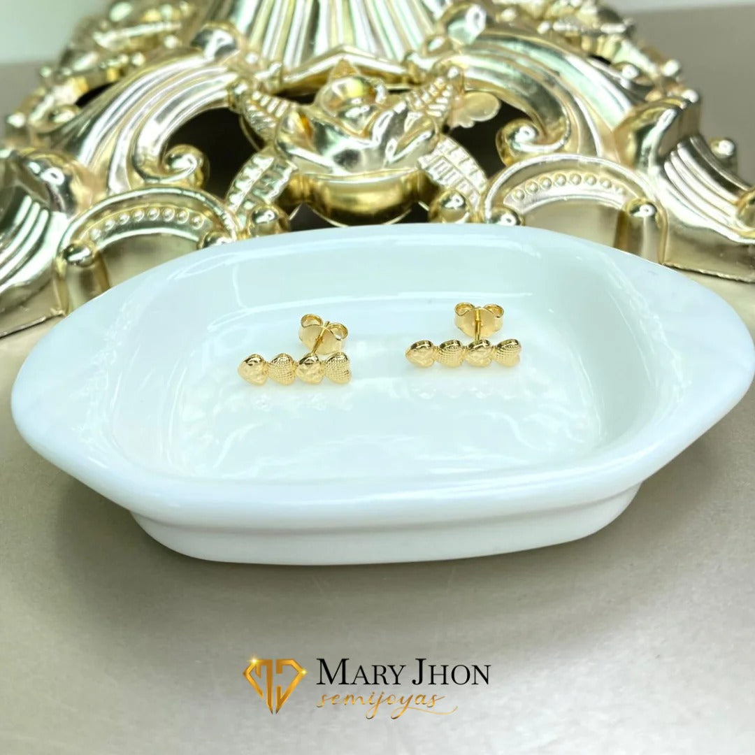 Delicados y modernos, estos aretes dorados tipo stud presentan un diseño minimalista de cinco esferas alineadas con textura sutil que les aporta un toque único y elegante. Su estilo discreto y versátil los convierte en el accesorio perfecto para el día a día o para complementar looks sofisticados.
