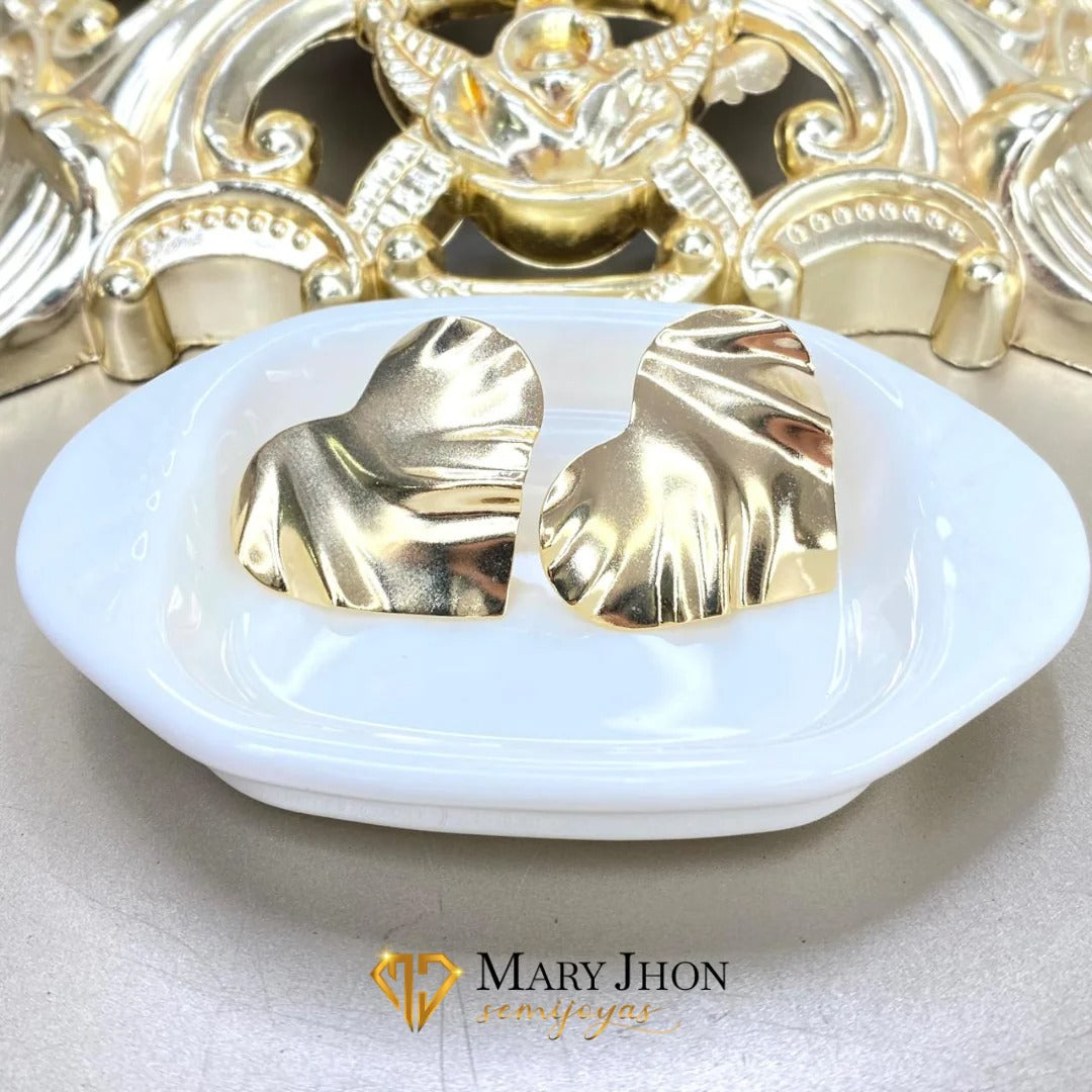 Impacta con estos aretes maxi en forma de corazón, elaborados en semijoya con un elegante baño dorado. Su diseño moderno con efecto arrugado y brillo pulido los convierte en el accesorio ideal para expresar estilo, personalidad y romanticismo en una sola pieza.